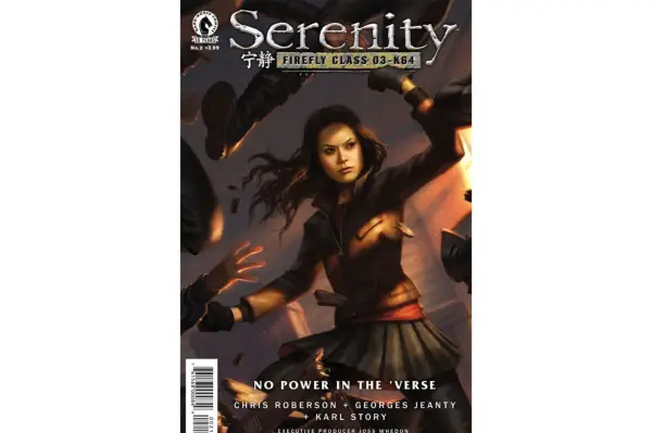 I tak, to Wash’s. Chociaż jej mąż-pilot (Alan Tudyk z „Gwiezdnych Wojen”) zginął podczas wydarzeń z „Serenity”, z komiksów wynika, że wojowniczka statku Zoe (Gina Torres) w rzeczywistości była w ciąży podczas filmu. Właściwie dlatego komiksy zaczynają się dziewięć miesięcy później: w pierwszym numerze Liści na wietrze Zoe rodzi córeczkę o imieniu Emma.